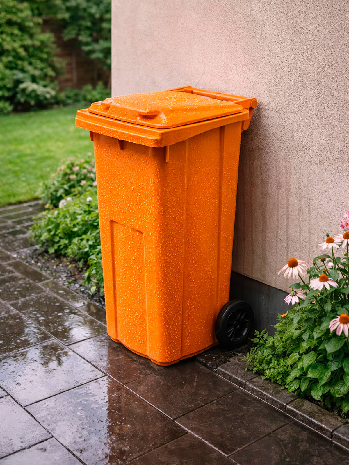 Контейнер для мусора 120 л на колёсах с крышкой, оранжевый — повышенная видимость и системный контроль отходов